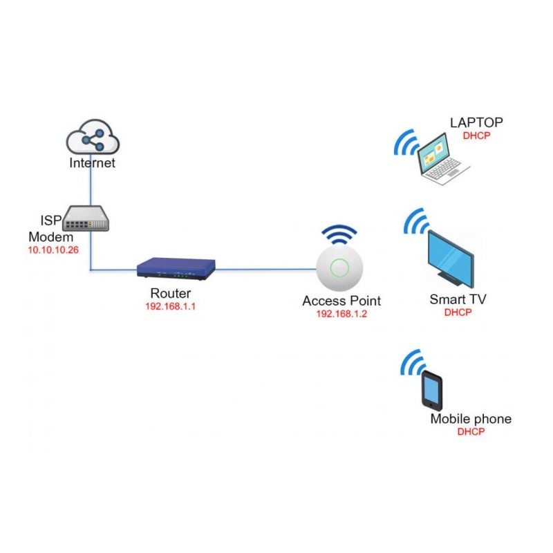โหมด Access Point คือโหมดพื้นฐานที่สุดของการใช้งาน Wireless อยู่แล้วนั่นคือ Access Point จะทำหน้าที่ในการเชื่อมต่อเครื่องลูกข่ายเข้าสู่ ระบบเครือข่ายแบบมีสาย เพื่อเข้าไปใช้งานอินเตอร์เน็ต หรือเข้าไปยังเครือข่าย LAN ของสำนักงานเป็นต้น โดยการเข้าถึงเครือข่ายอาจจะมีการเข้ารหัส (Encryption) โดยผู้ใช้งานจะต้องใส่ Key ก่อนเชื่อมต่อ บนมาตรฐาน WEP หรือ WPA เป็นต้น